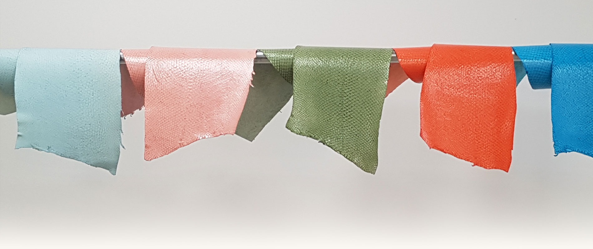 Le cuir de saumon, teinté uniquement par pigments naturels, convient parfaitement aux colorations les plus subtiles, pour préserver votre identité de marque.